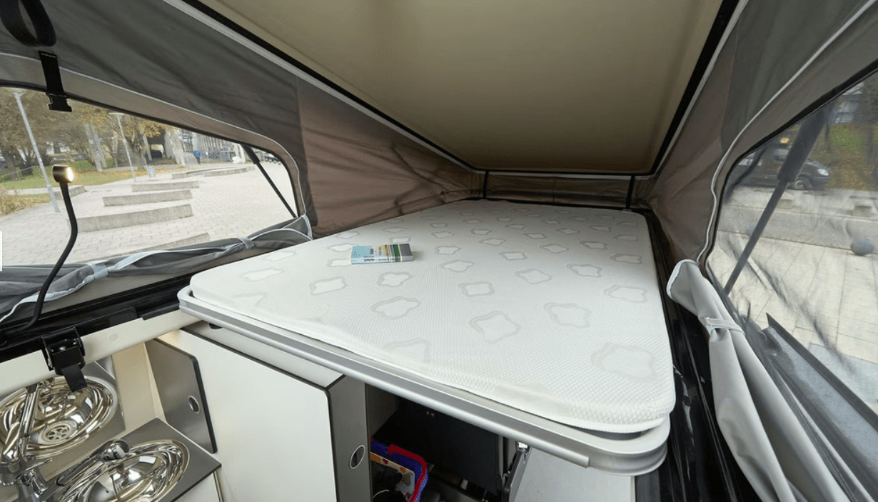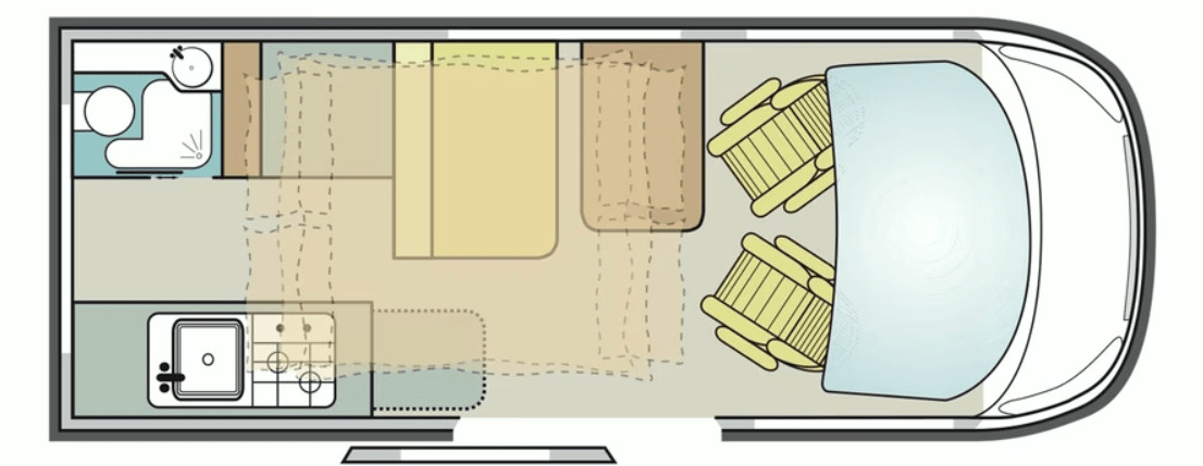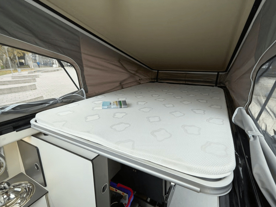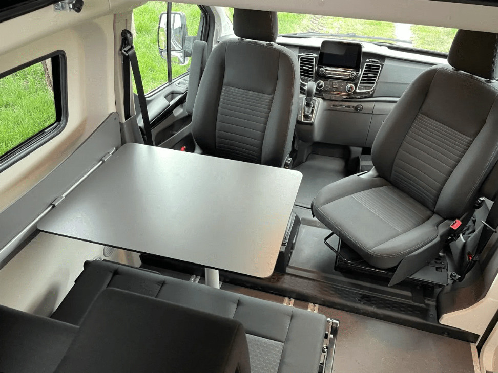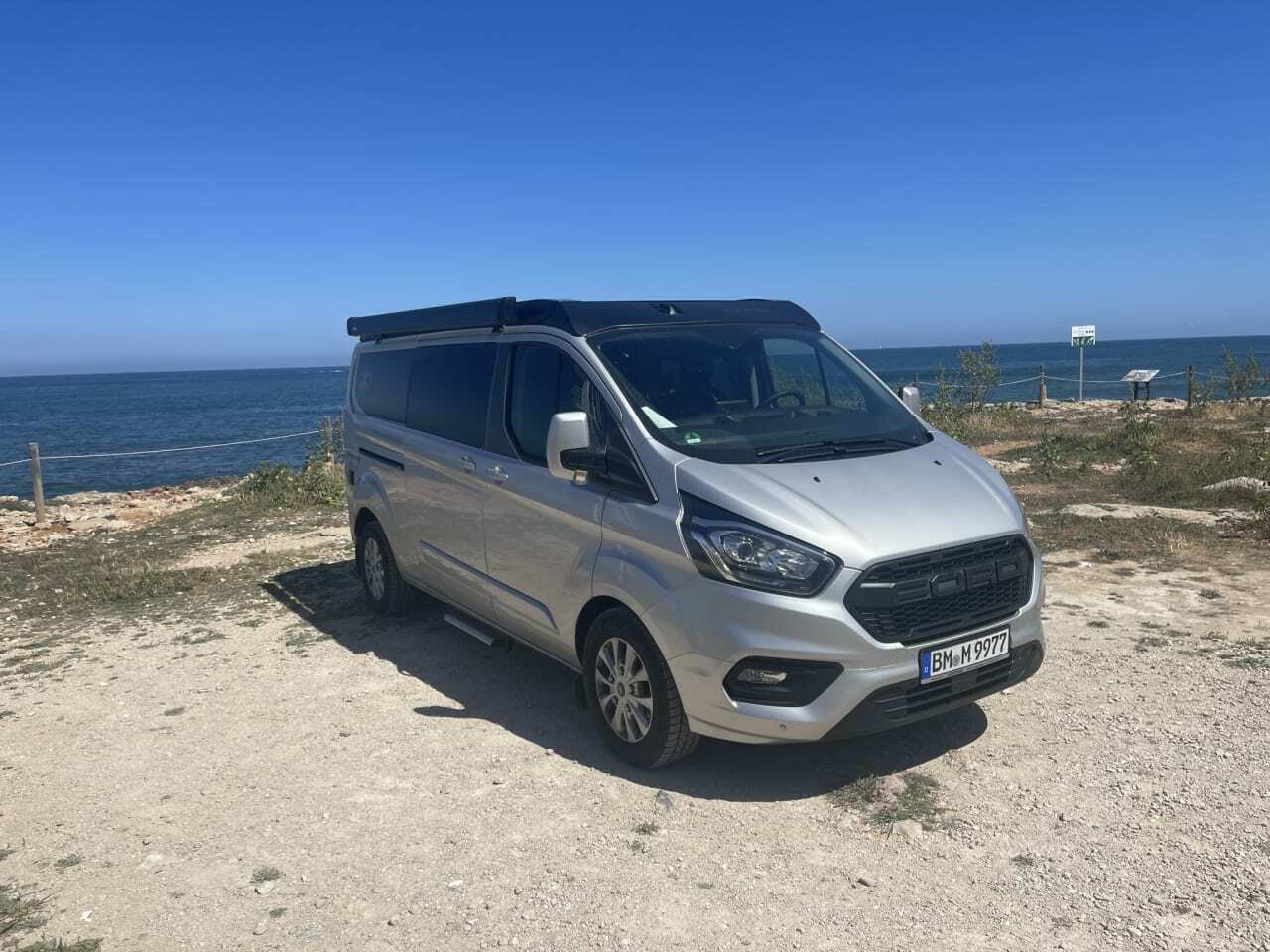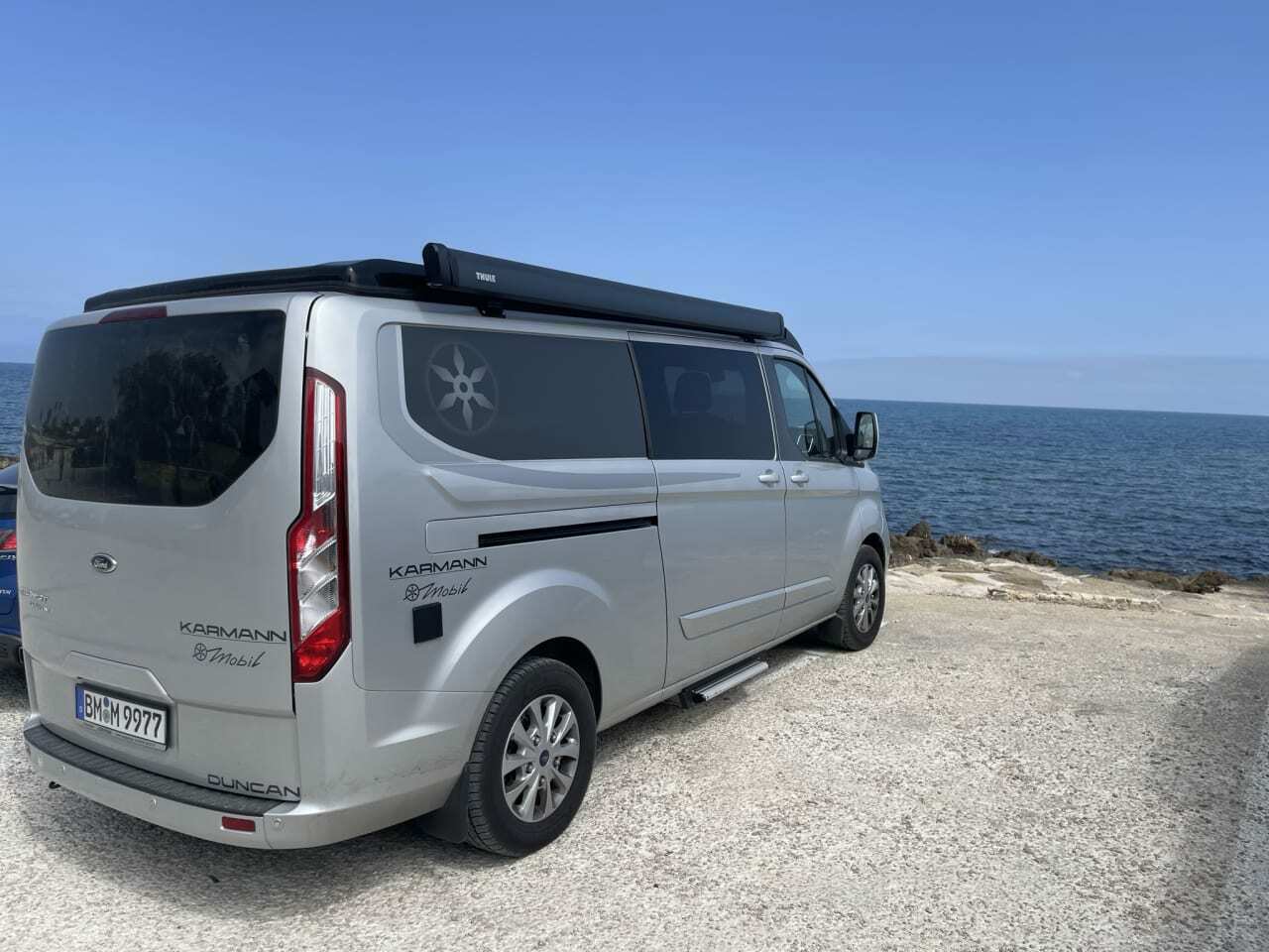 Der Duncan 545 von Karman ist ideal für Zwei, bietet aber Schlafplätze für 4 Personen. Highlight ist das separate Bad mit Toilette und Waschbecken. Er verfügt über einen 42L Kühlschrank mit Eisfach, Truma Heizung und Warmwasser, Markise, 2 Faltstühle und einen innen/außen aufbaubaren Tisch. Mit 185 PS, Automatikgetriebe und Tempomat macht der Ford Transit Custom das Reisen zum Vergnügen.